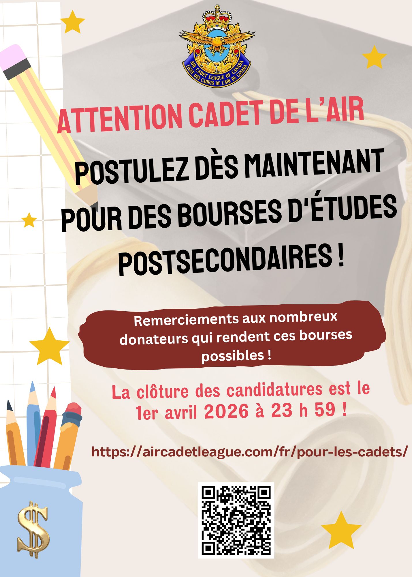 ATTENTION CADETS DE L’AIR : Postulez dès maintenant pour des bourse d’études postsecondaires